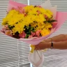 Ощущая нежное прикосновение первых лучей утреннего солнца, этот букет словно окутывает своим теплом и нежностью. Желтые воздушные хризантемы притягиваются к свету, создавая атмосферу радости и оптимизма. Нежные альстромерии, словно мягкие облака на небе, добавляют воздушности и изысканности композиции. Букет, оформленный в крафтовую упаковку, придает ему естественность и некую загадочность. Испытайте чарующую магию этого букета и подарите его любимому человеку, чтобы принести в его жизнь тепло и счастье.